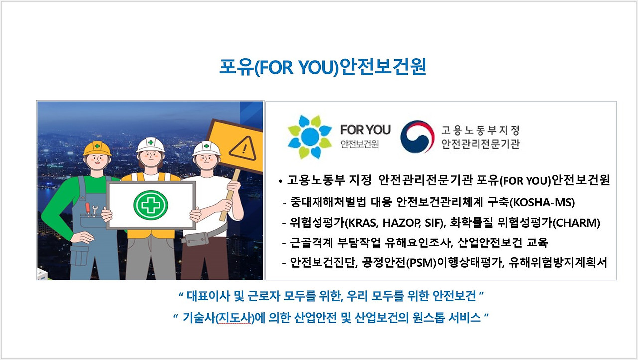 고용노동부지정 안전관리전문기관, 포유(FOR YOU)안전보건원 최치현