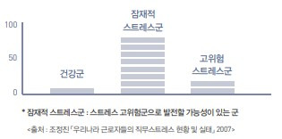 '우리나라 근로자의 직무스트레스 현황 및 실태(조정진)'에 의하면 직장인 중 95%가 스트레스를 느끼고 있으며, 약 22% 가량은 심각한 수준의 스트레스를 받고 있다고 말하고 있다.